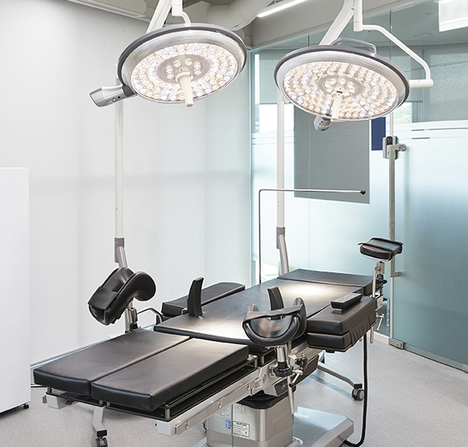 수수술장 침대와 무영등을 구비하여 실제 수술장과 같은 환경 조성