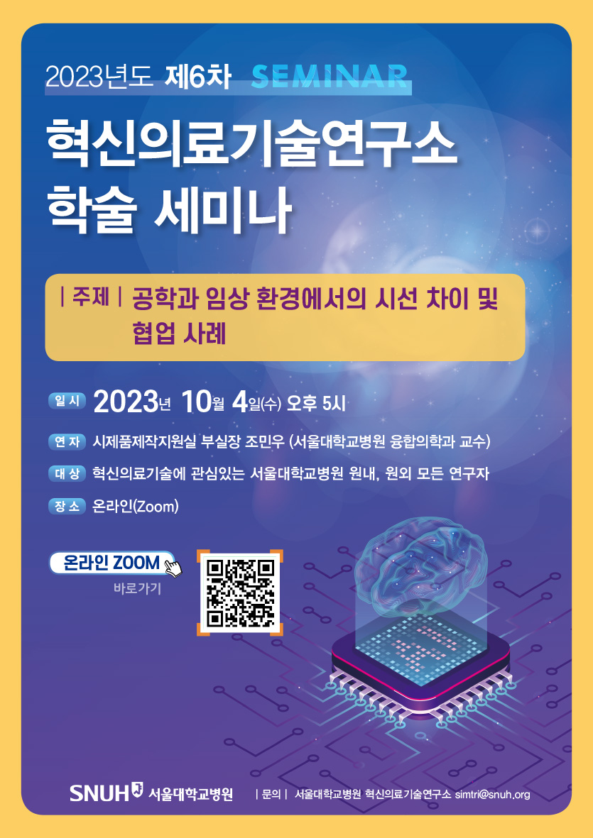 [학술세미나] 2023년 제6차 혁신의료기술연구소 학술세미나_10/4(수) 17시