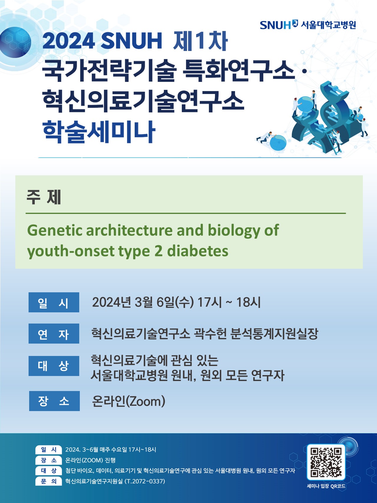 일시: 2024년 3월 6일(수) 17시~18시 연자: 혁신의료기술연구소 분석통계지원실장 곽수헌 교수 장소: 온라인(Zoom) - http://bit.ly/SIMTRI_Seminar01 |