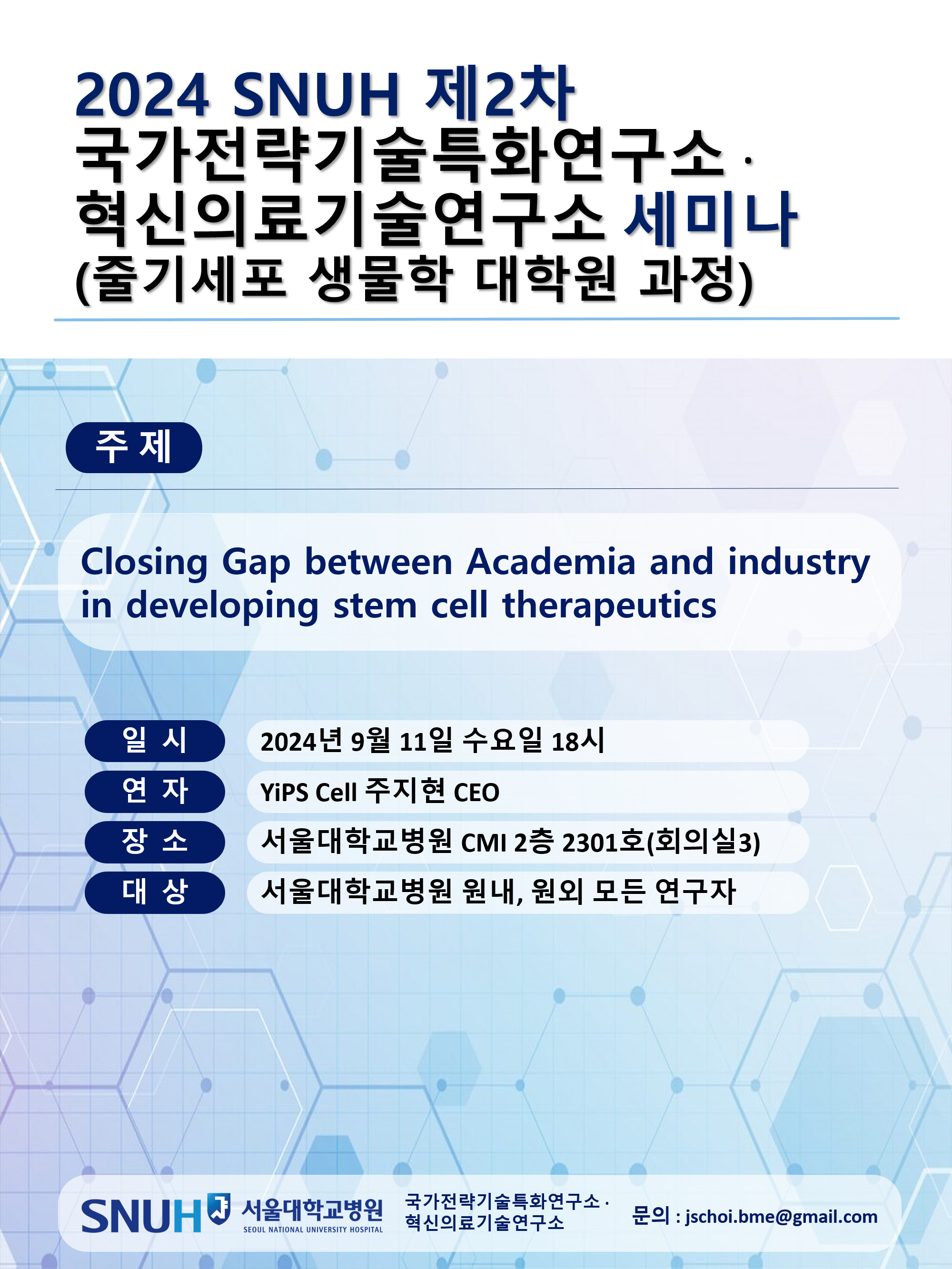 [세미나] (9/25) 2024 SNUH 제3차 국가전략기술특화연구소∙혁신의료기술연구소 세미나