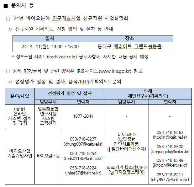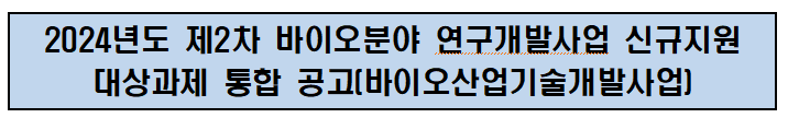 [3/7~4/3] 2024년도 제2차 바이오분야 연구개발사업 신규지원 대상과제 통합 공고(바이오산업기술개발사업)