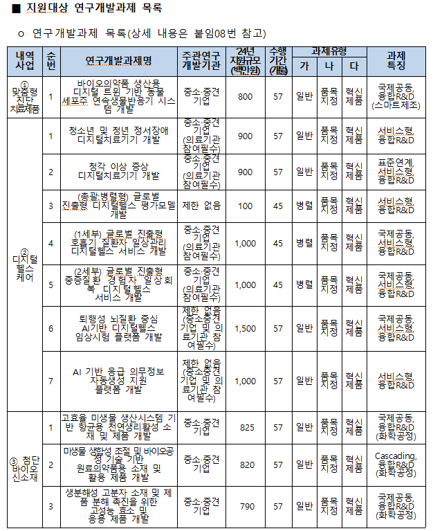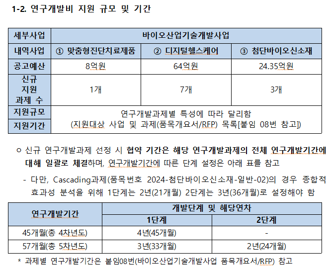 (공고 제2024-188호)2024년도 제2차 바이오분야 연구개발사업 신규지원 대상과제 통합 공고문(바이오산업기술개발사업).hwp